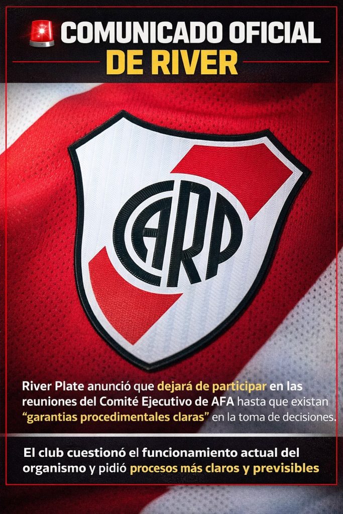 Con un comunicado oficial, el club de Núñez anunció que no asistirá a las reuniones del Comité Ejecutivo de la AFA. La dirigencia cuestiona la falta de reglas claras en la toma de decisiones y vuelve a poner en debate el formato del fútbol argentino.